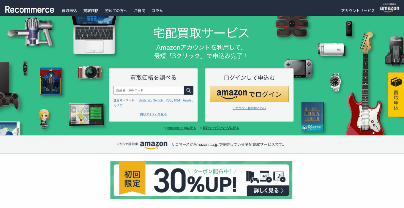 Amazonを使っているなら、「リコマース」が手軽です。Amazonアカウントがあれば、住所入力や振込口座の登録を新規で行う必要がありません