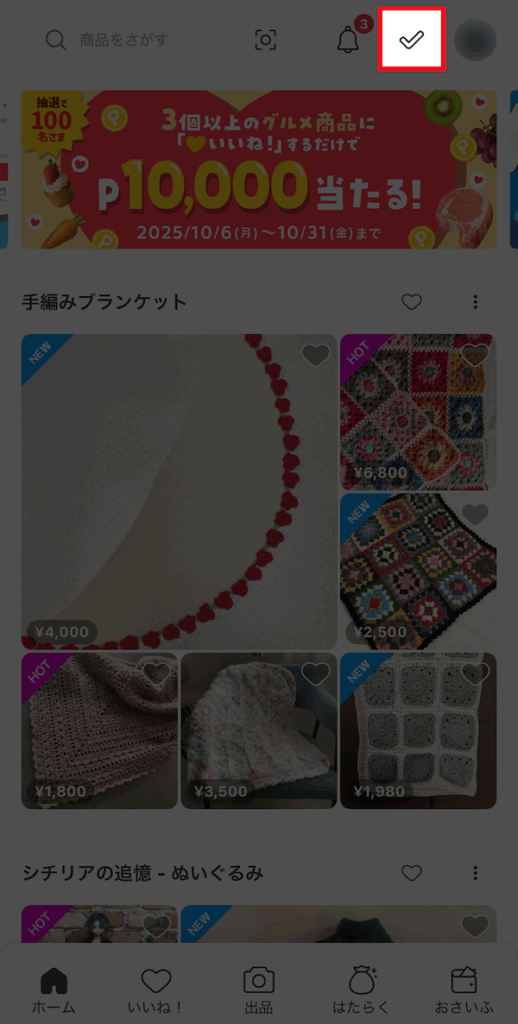 通知が来た後も、アプリ画面右上のチェックボタンから、簡単に取引画面に移動できます。
